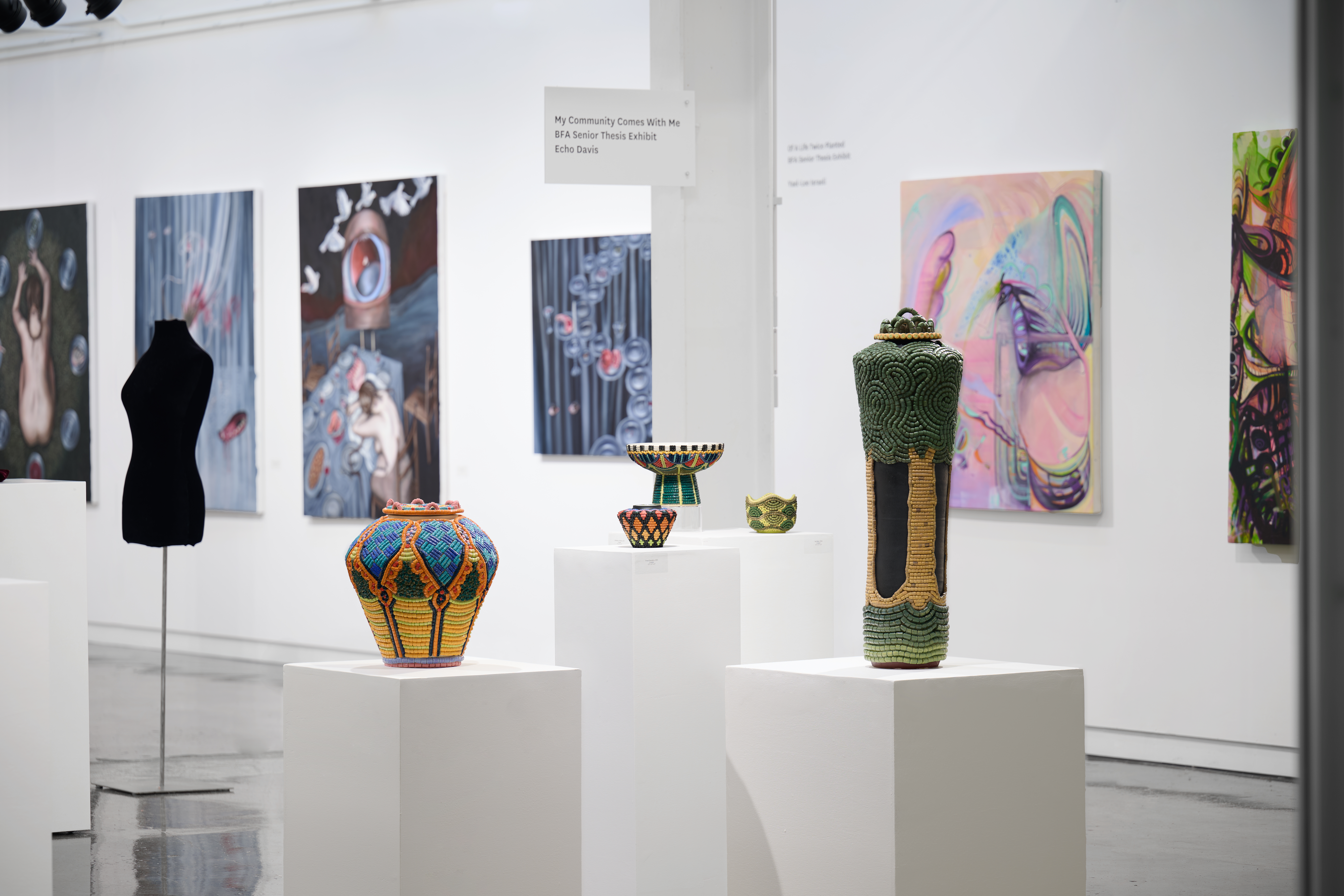 The Crawford and Payto Galleries are located in the Center for the Visual Arts, adjacent to the atrium and main CVA Gallery. They function primarily to hold graduate and undergraduate exhibitions late in each semester and to feature other exhibitions deemed educationally valuable by faculty. Please check the calendars below for space availability!